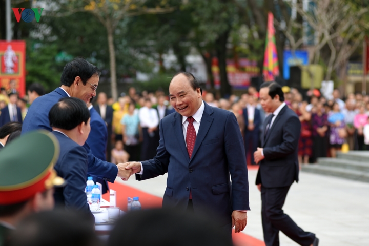 Sau lễ rước kiệu vua Quang Trung, Thủ tướng Nguyễn Xuân Phúc dẫn đầu đoàn đại biểu cùng lãnh đạo các bộ, ban ngành và đông đảo Nhân dân Thủ đô cũng như du khách thập phương về dâng hương, hoa tưởng nhớ công lao to lớn của vua Quang Trung cùng các tướng lĩnh, chiến sĩ nghĩa quân Tây Sơn. Ảnh: Thống Nhất/TTXVN. |