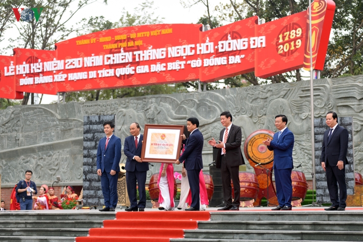 Dịp này, di tích Gò Đống Đa cũng vinh dự được đón bằng xếp hạng di tích quốc gia đặc biệt. Chủ tịch UBND TP Hà Nội Nguyễn Đức Chung khẳng định: Di tích “Gò Đống Đa được xem như là biểu tượng chiến thắng của quân Tây Sơn; là minh chứng lịch sử cho truyền thống yêu nước, yêu độc lập - tự do ngàn đời của nhân dân ta; là sự khẳng định tinh thần đoàn kết, dũng cảm, ý chí quật cường; là bản anh hùng ca bất hủ trong lịch sử đấu tranh dựng nước và giữ nước vĩ đại của dân tộc. |