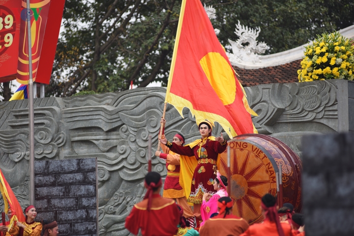 Hình ảnh người anh hùng áo vải Quang Trung - Nguyễn Huệ được tái hiện trên sân khấu. |