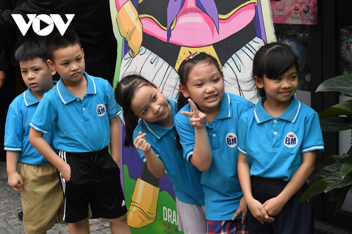 Các em thiếu nhi trước gian hàng của nhà xuất bản Kim Đồng.