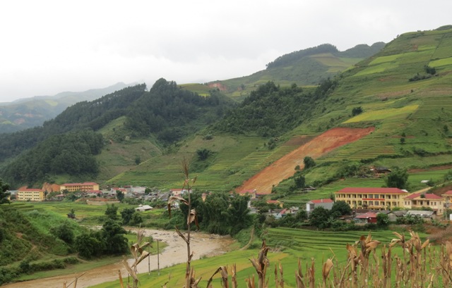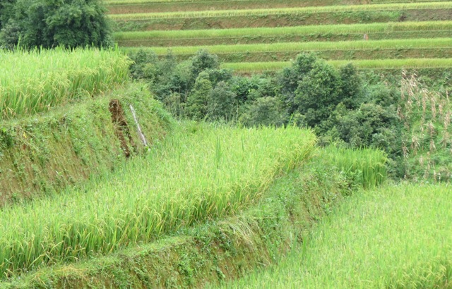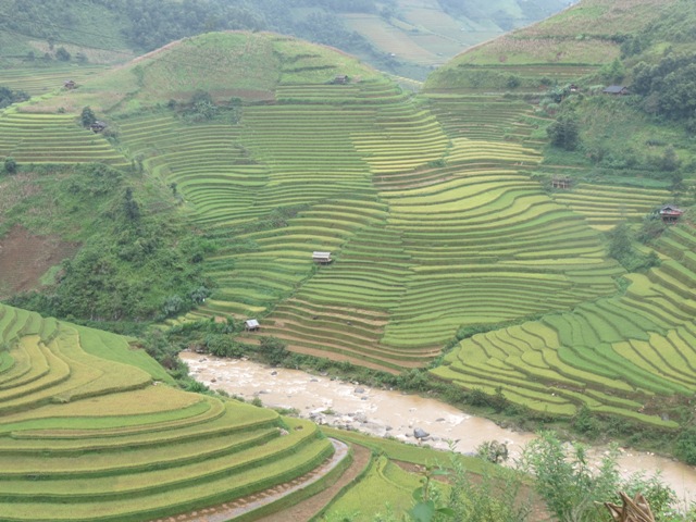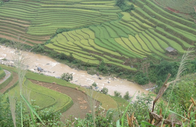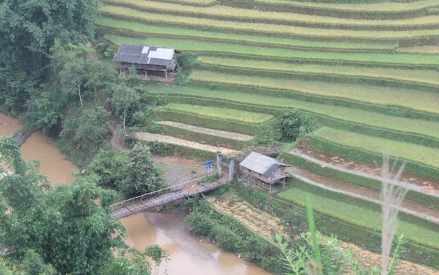 | Những thửa ruộng bậc thang trải rộng đến sát con suối nhỏ nằm dưới thung sâu. |