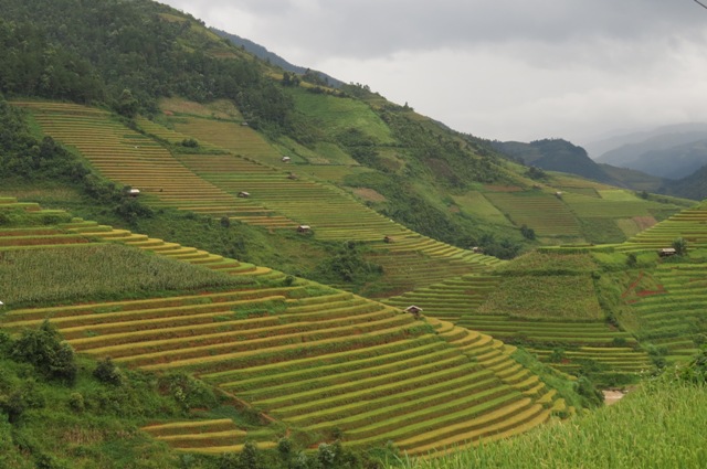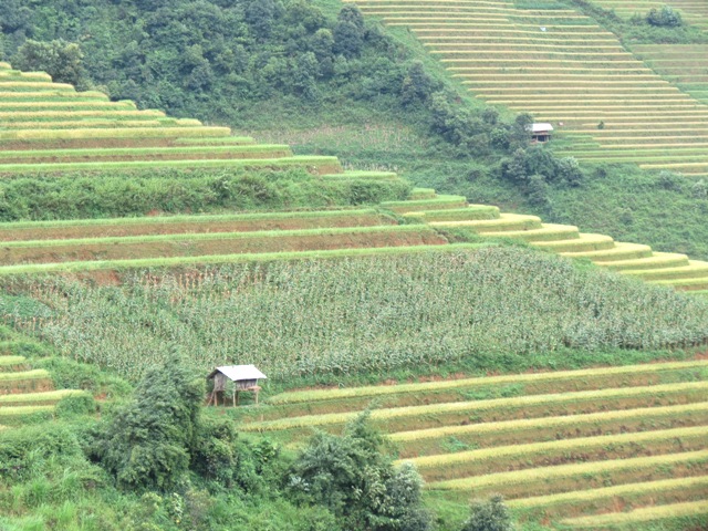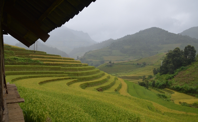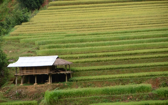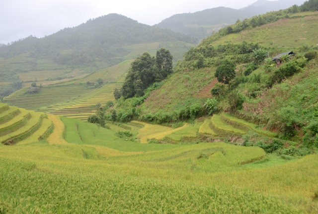 (VOV5) - Ruộng bậc thang là phương thức canh tác chủ yếu của đồng bào dân tộc Mông trên địa hình đất dốc. Từ trên cao nhìn xuống, các thửa ruộng bậc thang giống như những bức tranh thuỷ mặc. Còn từ xa nhìn lại, ta lại có cảm giác những bậc ruộng như những bậc thang dẫn lên đỉnh núi và tới tận trời cao. Năm 2007, Bộ Văn hoá, Thể thao và Du lịch Việt Nam xếp hạng quần thể ruộng bậc thang Mù Cang Chải là danh thắng quốc gia. Cứ thu về, những nương lúa bậc thang Mù Cang Chải nhuộm một màu vàng của lúa chín, một kiệt tác mùa vàng độc đáo.