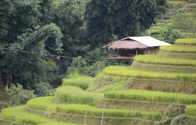 Những ngôi nhà bình dị của đồng bào dân tộc thiểu số gần bên ruộng lúa. |