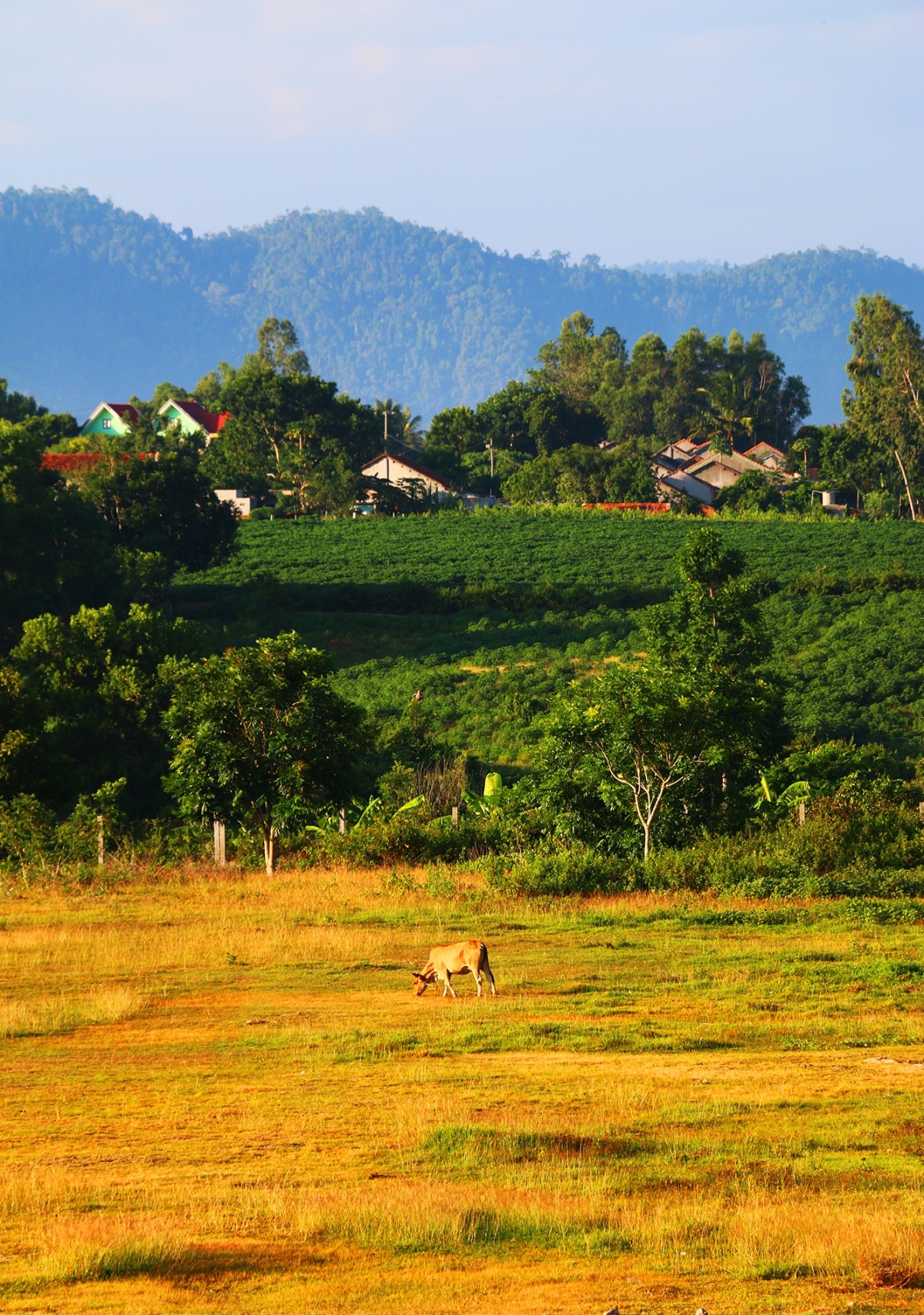Bò nhởn nhơ gặm cỏ trên một bãi đất trống ở ngoại vi TT.Hai Riêng, H.Sông Hinh. Đây là thị trấn miền núi của Phú Yên, có khung cảnh và bờ hồ ở khu vực trung tâm được ví như hồ Xuân Hương của Đà Lạt.