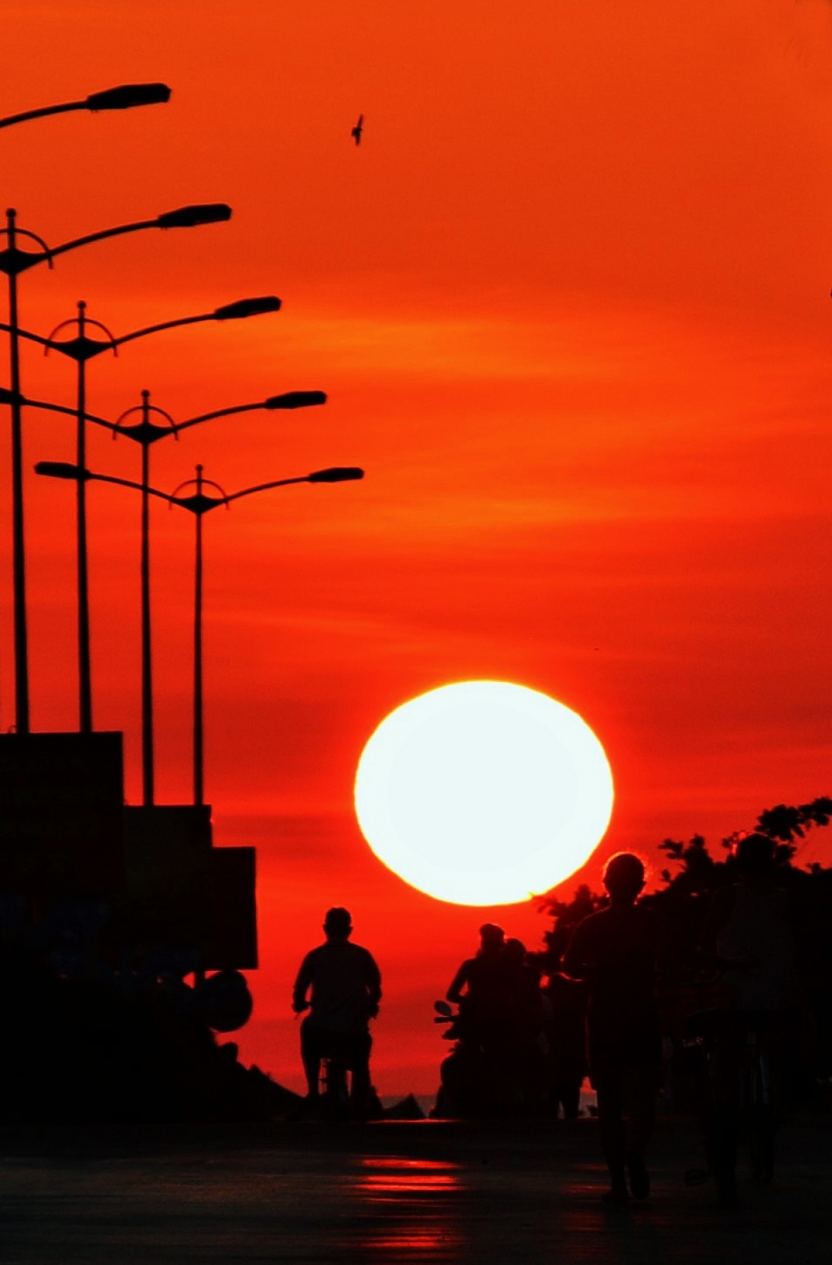 Một cánh chim liệng phía trên những người chạy bộ, đạp xe tập thể dục buổi sáng ở TP.Tuy Hòa, tỉnh lỵ của Phú Yên. Mặt trời mọc rất to, nhưng ánh nắng đầu ngày chưa đủ gay gắt, tạo ra quang cảnh có thể gọi du khách bật dậy khỏi giường.