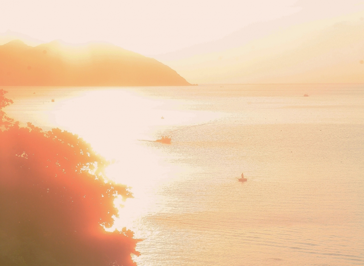 Ảnh chụp từ cửa sổ toa tàu trên hành trình từ ga Sài Gòn về ga Tuy Hòa, ngang qua khu vực Vũng Rô thuộc địa phận Phú Yên. Khi đoàn tàu đến đây, mặt trời vừa lên, hành khách sau một đêm ngủ say đang lục đục thức dậy trong tiếng loa vang nhắc nhở chuẩn bị hành lý để xuống ga.
