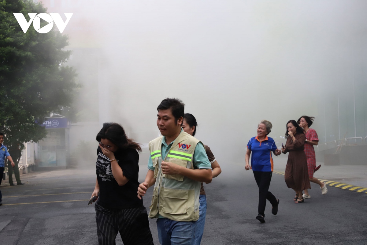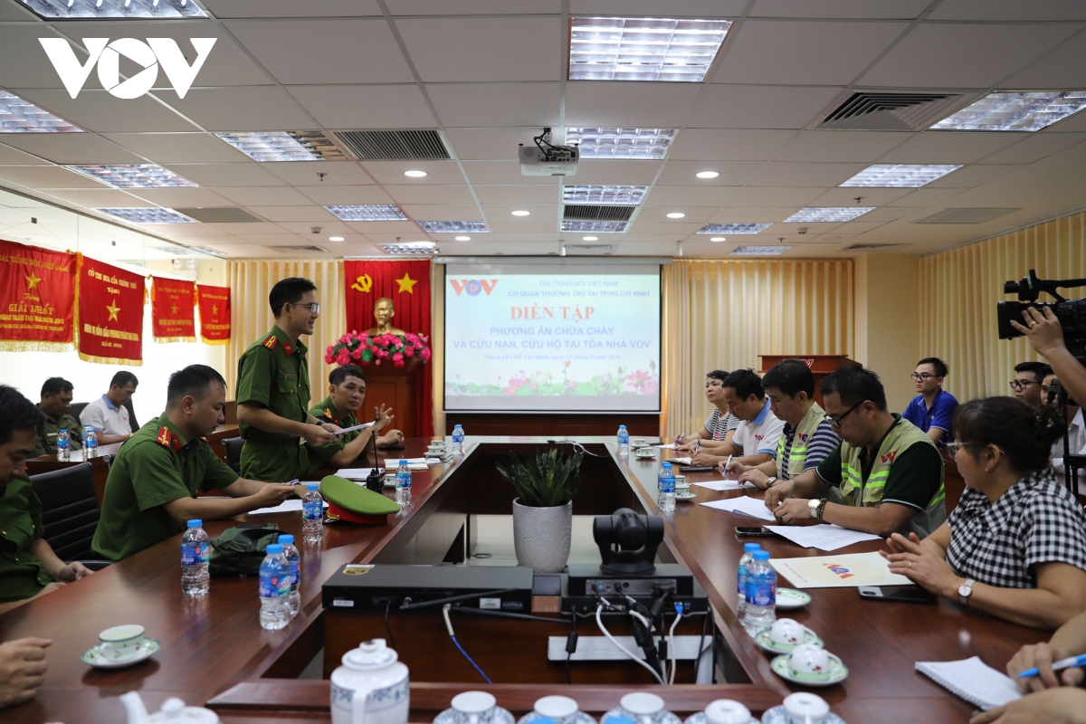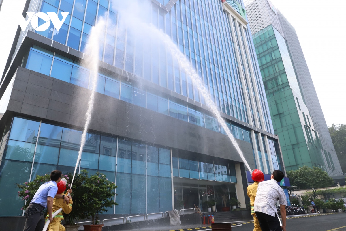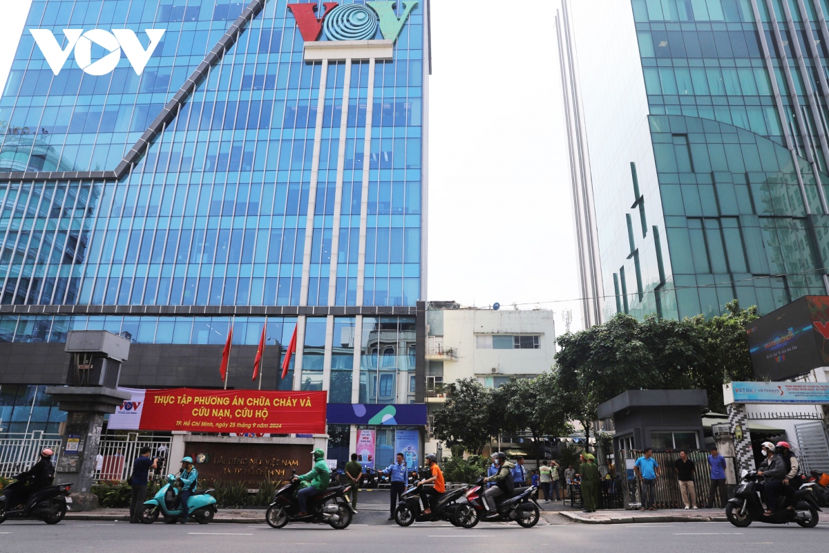 Nhằm thực hiện tốt công tác phòng cháy và chữa cháy (PCCC), trang bị kiến thức, nâng cao ý thức của viên chức, người lao động làm việc tại tòa nhà VOV, số 7, Nguyễn Thị Minh Khai, phường Bến Nghé, Quận 1, TP.HCM, sáng 25/9, Cơ quan Thường trú Đài Tiếng nói Việt Nam tại TP.HCM phối hợp với lực lượng Phòng PC 07, Công an TP.HCM, Công an phường Bến Nghé, Đội Cảnh sát giao thông Công an Quận 1 tổ chức buổi thực tập phương án chữa cháy, cứu hộ cứu nạn. |
