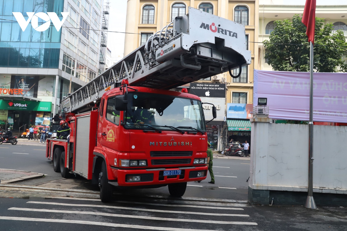 Lực lượng cảnh sát PCCC của Công an TP.HCM điều động xe chuyên dụng đến hiện trường |