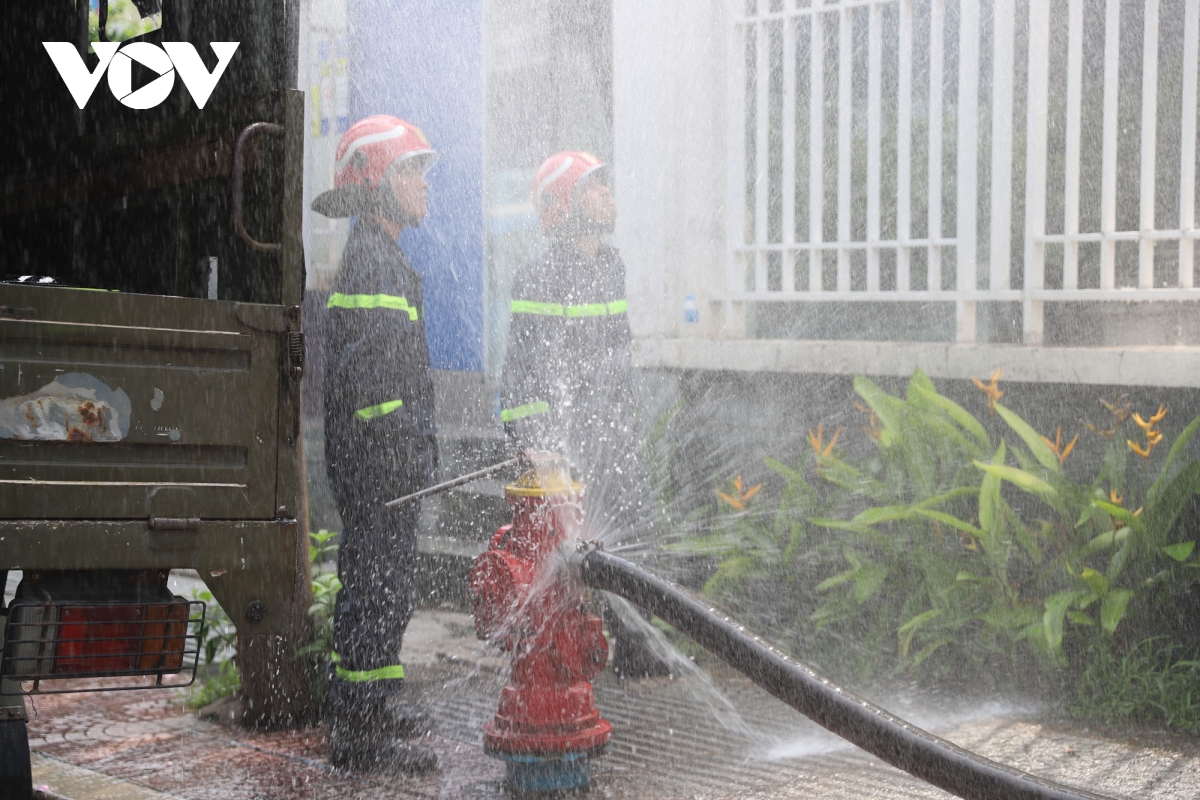 Lực lượng PCCC tại chỗ thực tập tình huống dập lửa... |