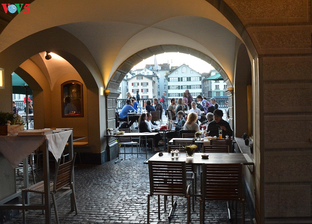 Dưới ánh nắng đẹp long lanh, ta hãy dừng chân, tạt vào một quán cà phê và thưởng thức một tách cà phê sôcôla tuyệt ngon trong quảng trường Paradeplatz, trên hồ Zurich hay ở ngay trong các ngõ nhỏ bên cạnh đường lớn.