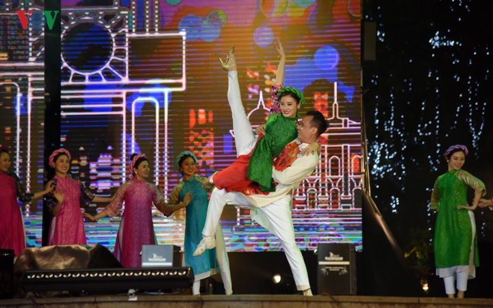 | Diễn ra ngoài trời ngay tại trung tâm thủ đô, nơi tập trung nhiều du khách trong và ngoài nước, chương trình đã thực sự mang lại một món ăn tinh thần đậm đà bản sắc dân tộc Việt Nam cho khán giả. |
