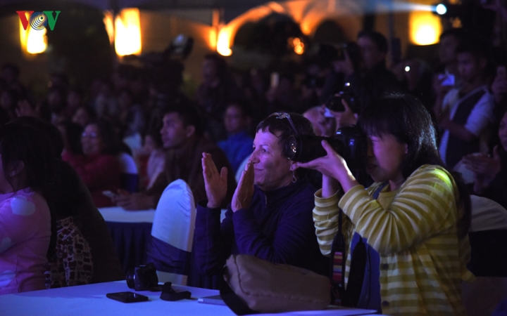 | Nhiều khán giả nước ngoài chăm chú theo dõi toàn bộ chương trình và thích thú khi được biết không chỉ một chút về nghệ thuật truyền thống của Việt Nam mà còn về tinh thần yêu hòa bình của người dân Việt Nam khi các ca sỹ thể hiện những ca khúc tiếng Anh như "Heal the world" hay "Hello Vietnam"./. |