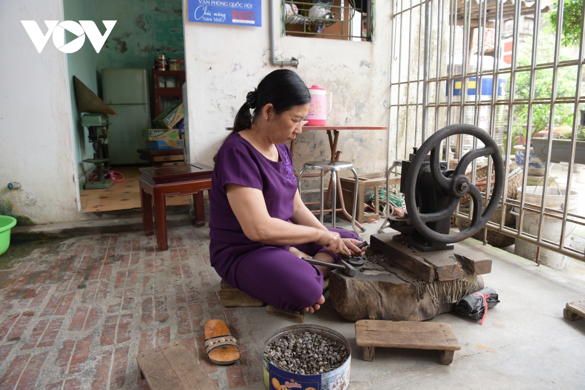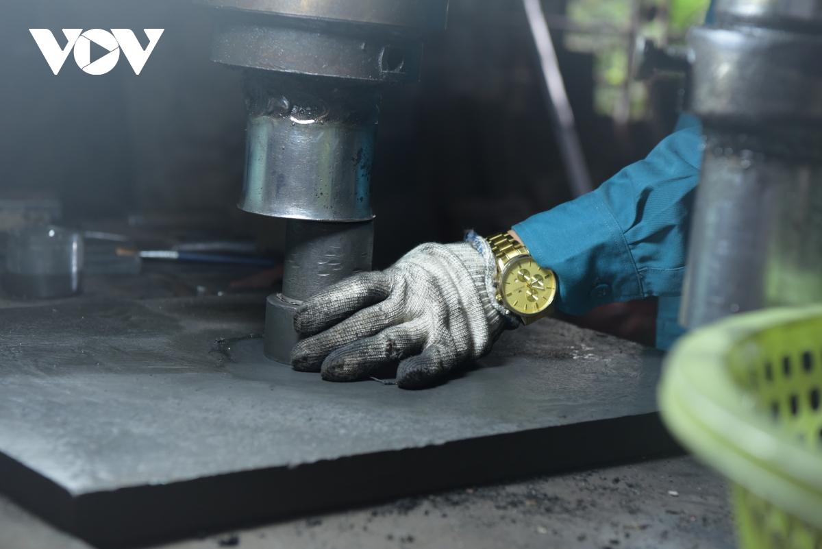 Trước người thợ ở Đồng Xâm làm thủ công hoàn toàn nhưng nay có vài công đoạn dùng máy hỗ trợ nên thời gian hoàn thiện sản phẩm cũng nhanh hơn.