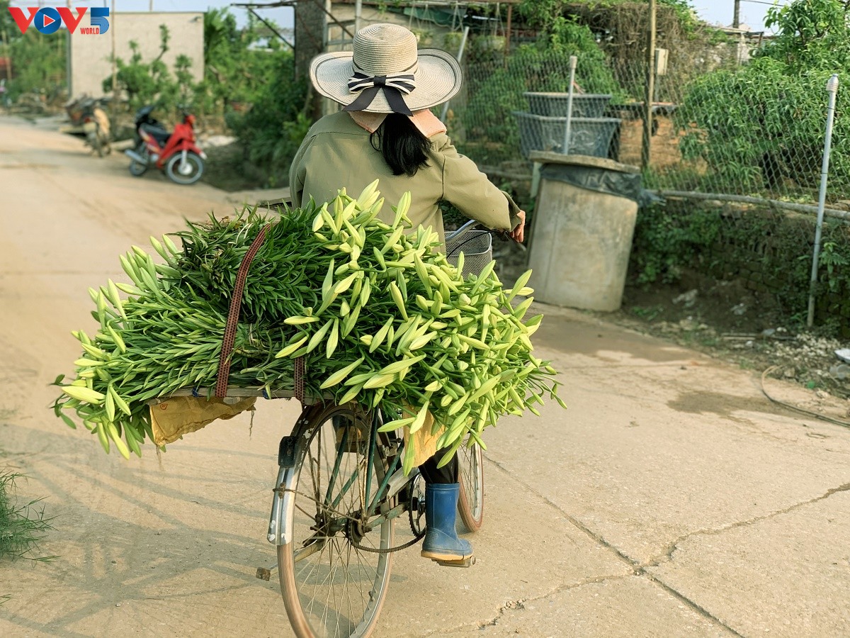 Hoa loa kèn được thu hoạch rồi chuyển cho các lái thương đưa ra các chợ đầu mối để tiêu thụ. |