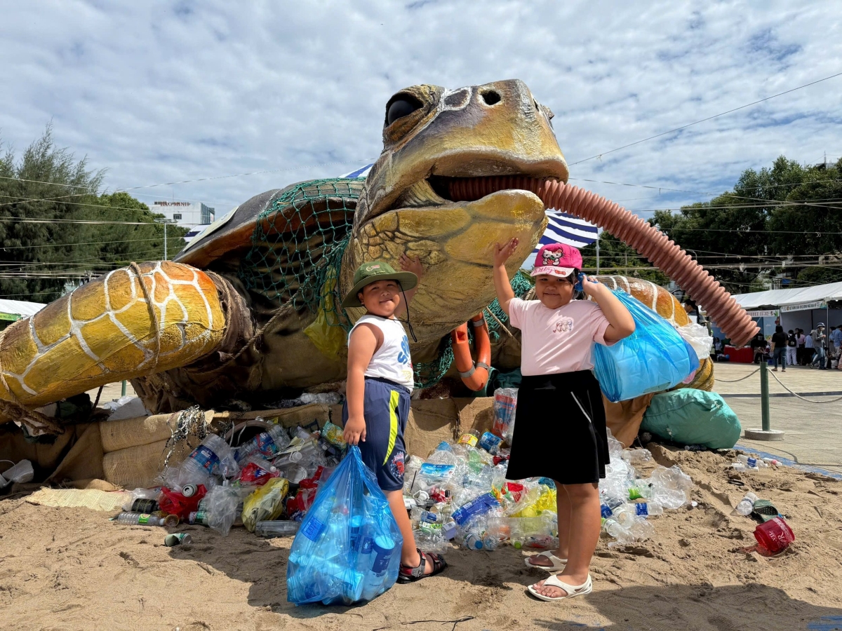 Tác phẩm nghệ thuật “Tiếng kêu câm lặng” – điểm nhấn nổi bật tại chương trình – thu hút sự quan tâm của các bạn nhỏ. Ảnh: Hà Văn/baocantho.com.vn |