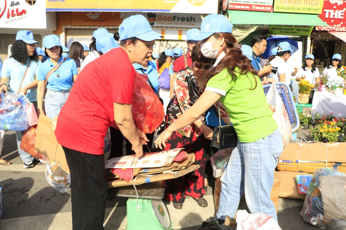 Người dân tham gia đổi rác lấy quà tặng là các sản phẩm thân thiện với môi trường. Ảnh: VGP/Thiện Tâm |