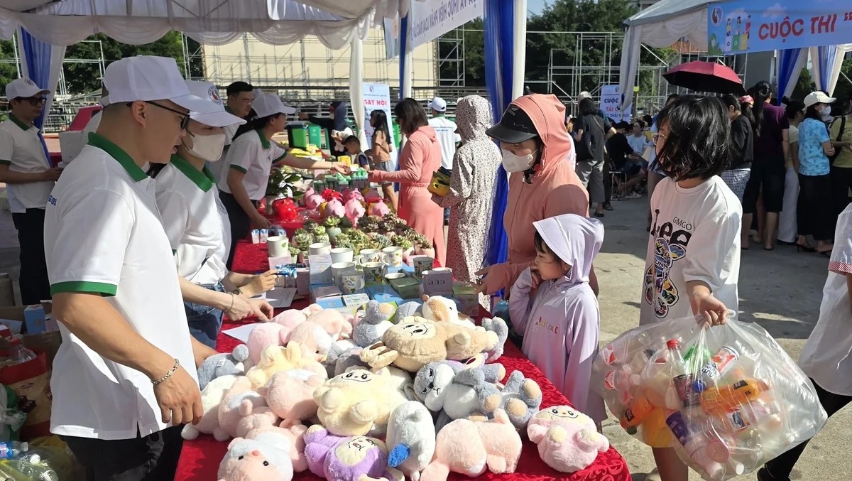 Ngày hội “Đổi rác thải nhựa và phân loại rác lấy quà” thu hút đông đảo học sinh và các tầng lớp nhân dân tham gia hưởng ứng. Ảnh: Hoàng Nghĩa/nongnghiepmoitruong.vn |