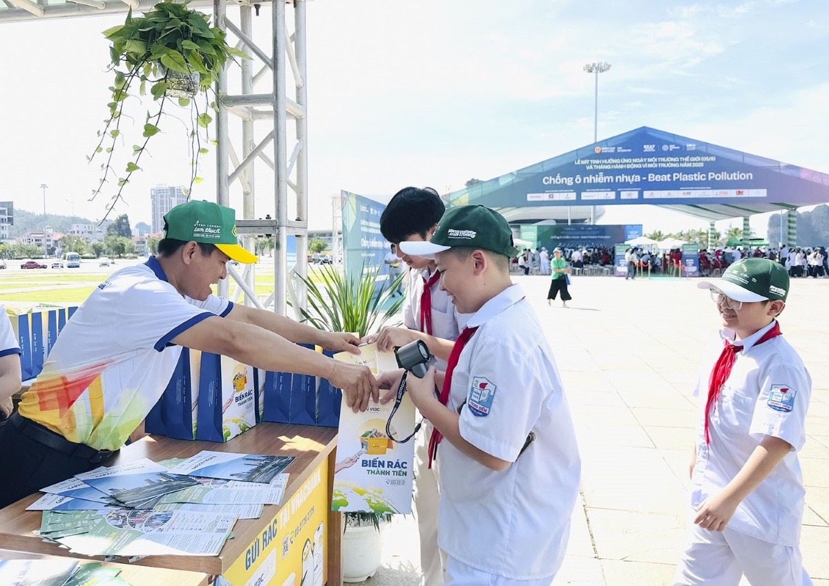 Sáng 1/6, tại thành phố Hạ Long, Bộ Nông nghiệp và Môi trường phối hợp với UBND tỉnh Quảng Ninh tổ chức Lễ Mít tinh hưởng ứng Ngày Môi trường Thế giới (5/6) và phát động Tháng hành động vì môi trường năm 2025 với chủ đề “Chống ô nhiễm nhựa”. Ảnh: Trường Giang/VOV |