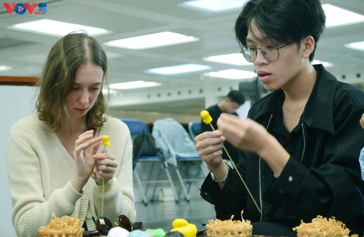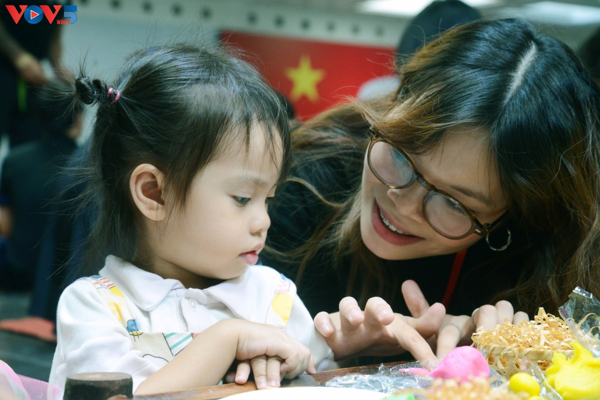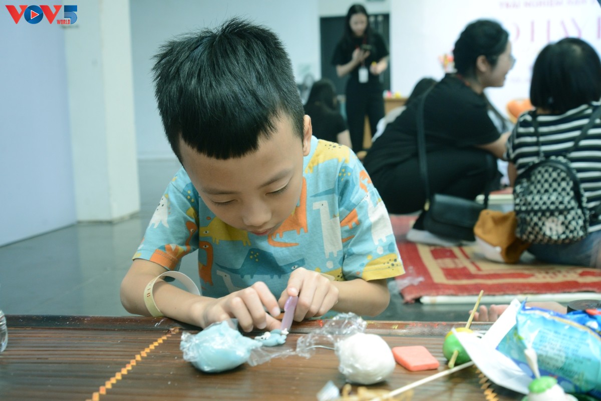 Các bạn nhỏ say sưa với trải nghiệm nặn tò he. |