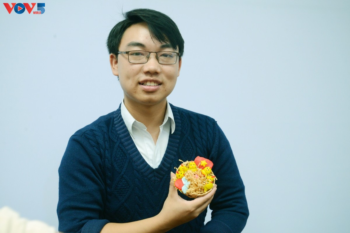 Bạn Hữu Hùng (sinh viên) bên sản phẩm do chính tay mình tạo nên. |