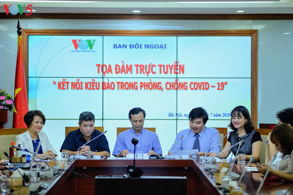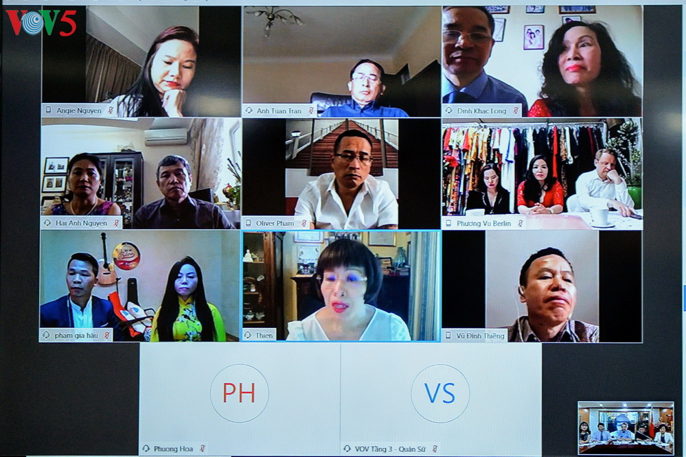 | Tọa đàm trực tuyến “ Kết nối kiều bào trong phòng chống dịch Covid-19” có sự tham gia của Lãnh đạo Ủy ban Nhà nước về người Việt Nam ở nước ngoài, Ban Đối ngoại VOV5, doanh nghiệp Sao Thái Dương và đại diện khoảng 20 Hội đoàn kiều bào trên thế giới. |