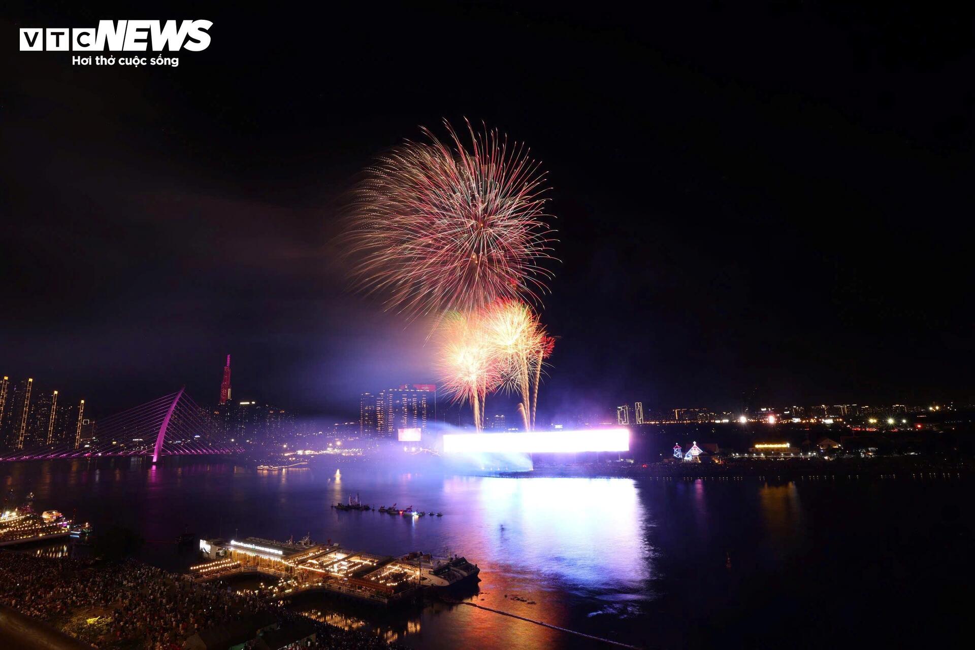 | Cũng trong tối 19/4, tại công viên bờ sông Sài Gòn, TP Thủ Đức màn bắn pháo hoa chào mừng 30/4 đã diễn ra với sự háo hức mong chờ của người dân TP.HCM. |