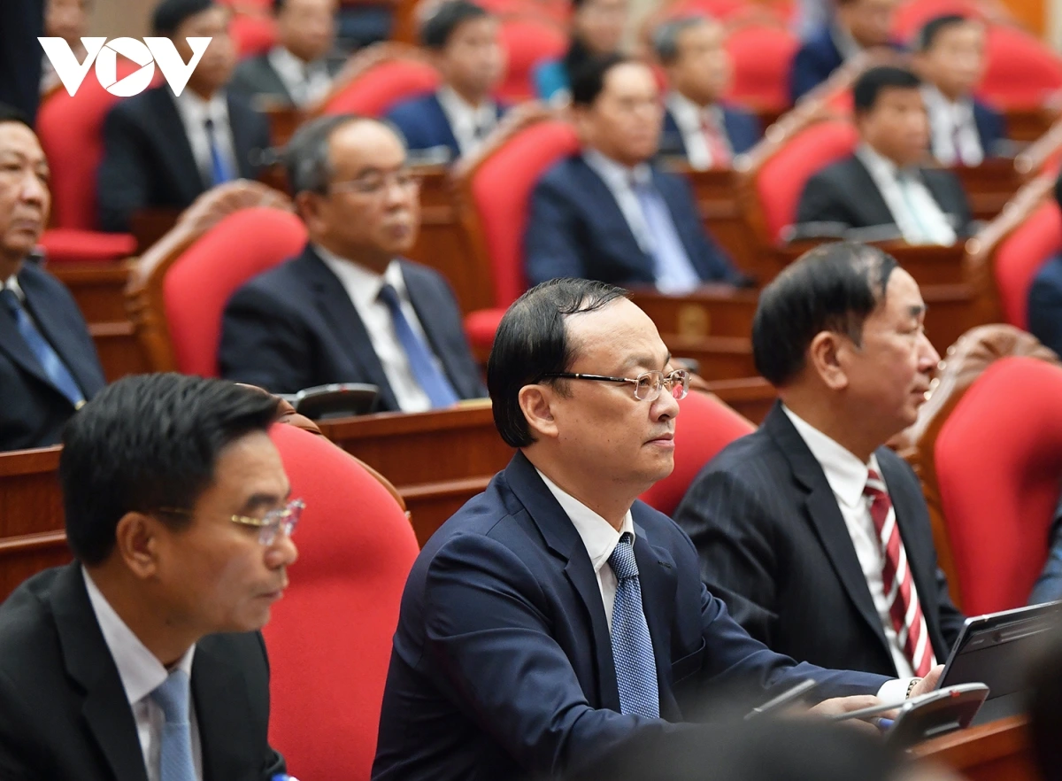 Hội nghị còn xác định rõ các điểm nghẽn thể chế cần tháo gỡ ngay trong thẩm quyền của Trung ương; thống nhất cơ chế theo dõi-kiểm tra-đánh giá định kỳ, công khai trách nhiệm người đứng đầu, khuyến khích người dám nghĩ, dám làm vì lợi ích chung. Thống nhất các định hướng lớn, phương pháp tổ chức thực hiện kết luận của Hội nghị Trung ương 13 và kết luận của Bộ Chính trị thời gian qua... Ảnh: Các đại biểu dự Hội nghị Trung ương 13