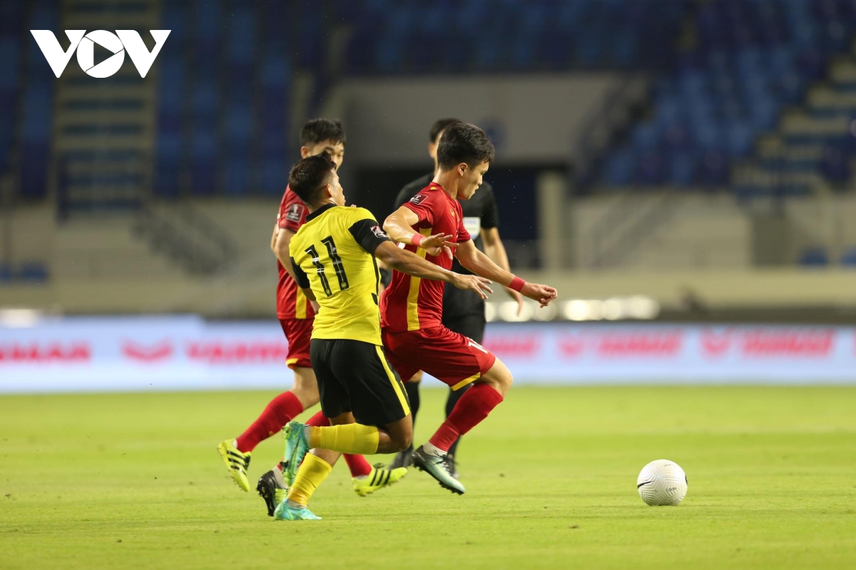 Malaysia đẩy cao đội hình sau khi nhận bàn thua trong khi Việt Nam lựa chọn lối chơi phòng ngự phản công.