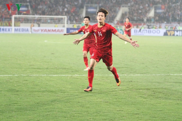 Xuất phát từ đường chuyền tinh tế của Đoàn Văn Hậu, tiền đạo số 18 phá bẫy việt vị trước khi anh có cú ra chân hiểm hóc, đánh bại thủ môn Nont, 1-0 nghiêng về thầy trò HLV Park Hang Seo. |
