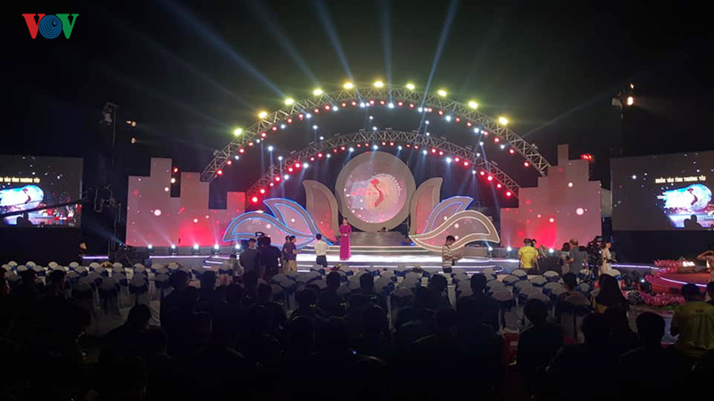 Hoạt cảnh múa "Sen tỏa" trên sân khấu tại Bến Nhà Rồng-đầu cầu TP.HCM.
