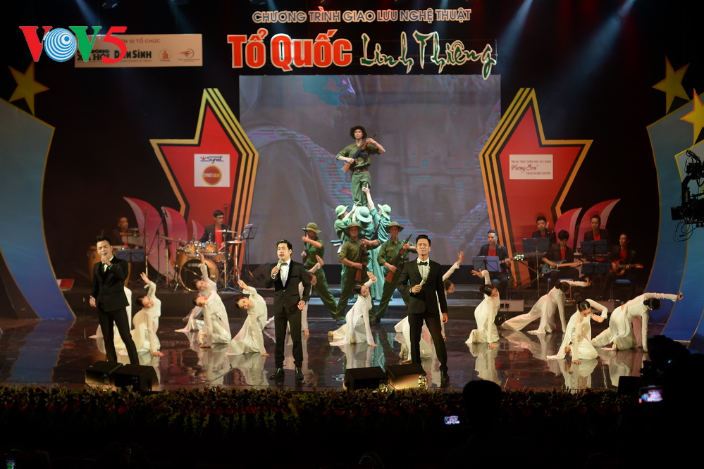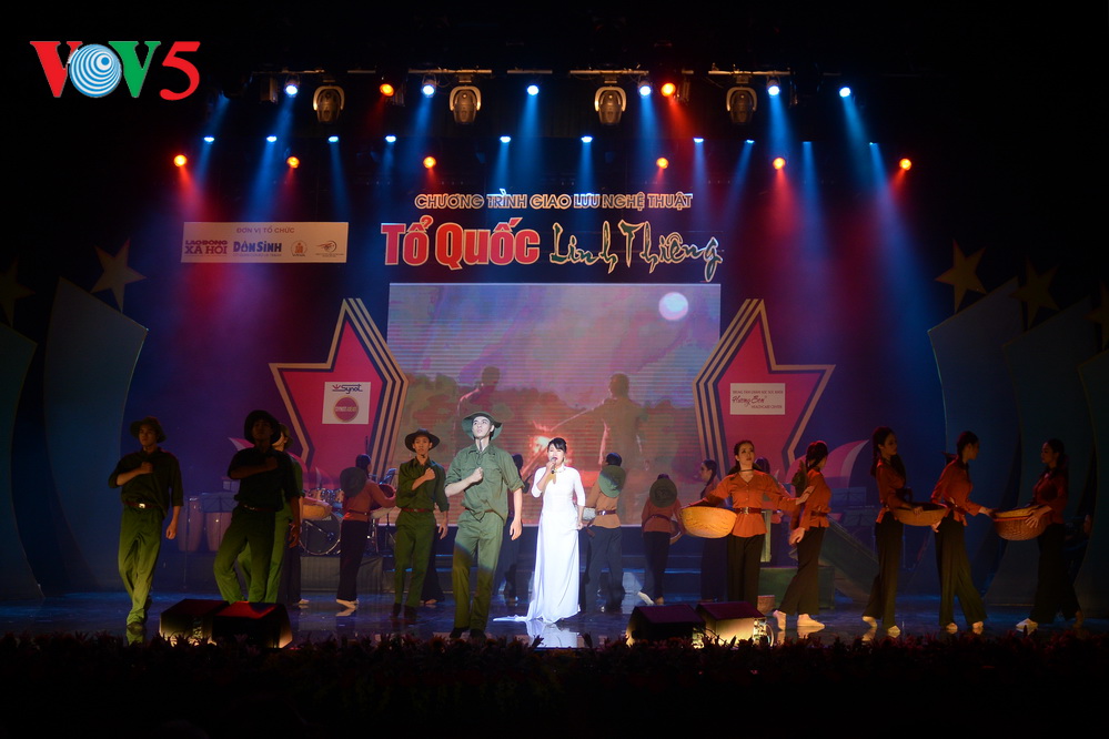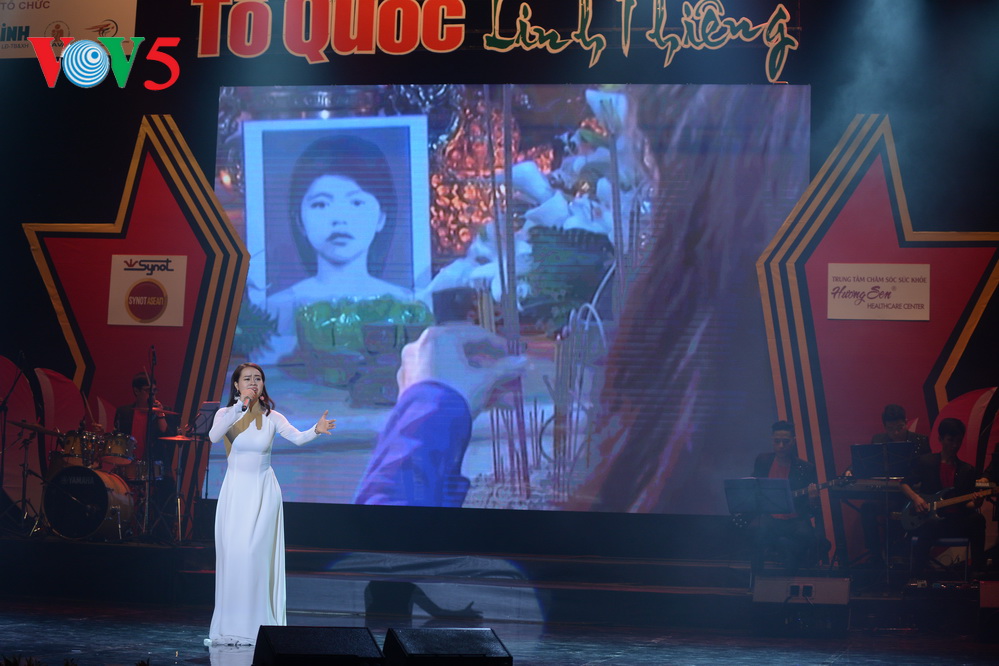 | "Tổ quốc linh thiêng" đêm tri ân bằng âm nhạc, bằng tình yêu, khơi gợi lại cho khán giả không khí lịch sử suốt hai cuộc trường kỳ kháng chiến của dân tộc. |