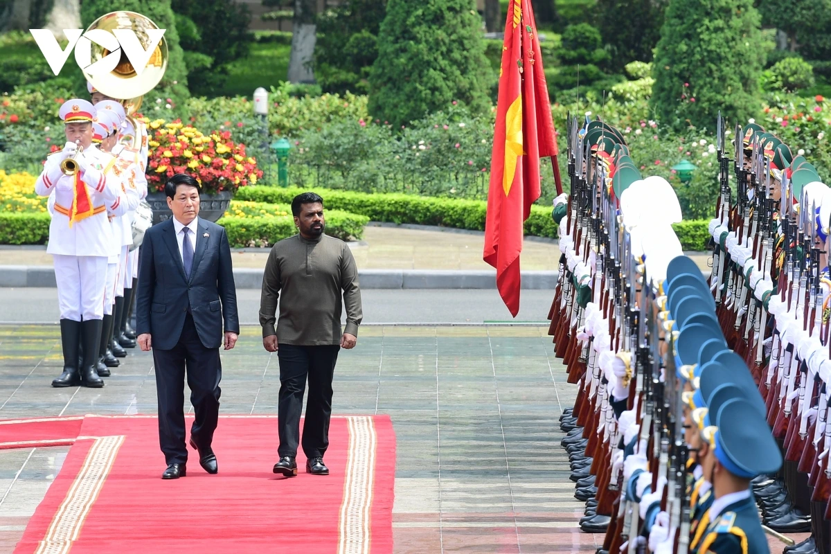 | Tối 05/5, tại Trung tâm Hội nghị Quốc tế, Hà Nội, Chủ tịch nước Lương Cường chủ trì chiêu đãi cấp Nhà nước Tổng thống Sri Lanka Anura Kumara Dissanayaka. Tại sự kiện, Tổng thống Anura Kumara Dissanayaka nhấn mạnh sự gắn kết giữa hai đất nước và tin tưởng vào tương lai xán lạn của mối quan hệ Việt Nam - Sri Lanka. |