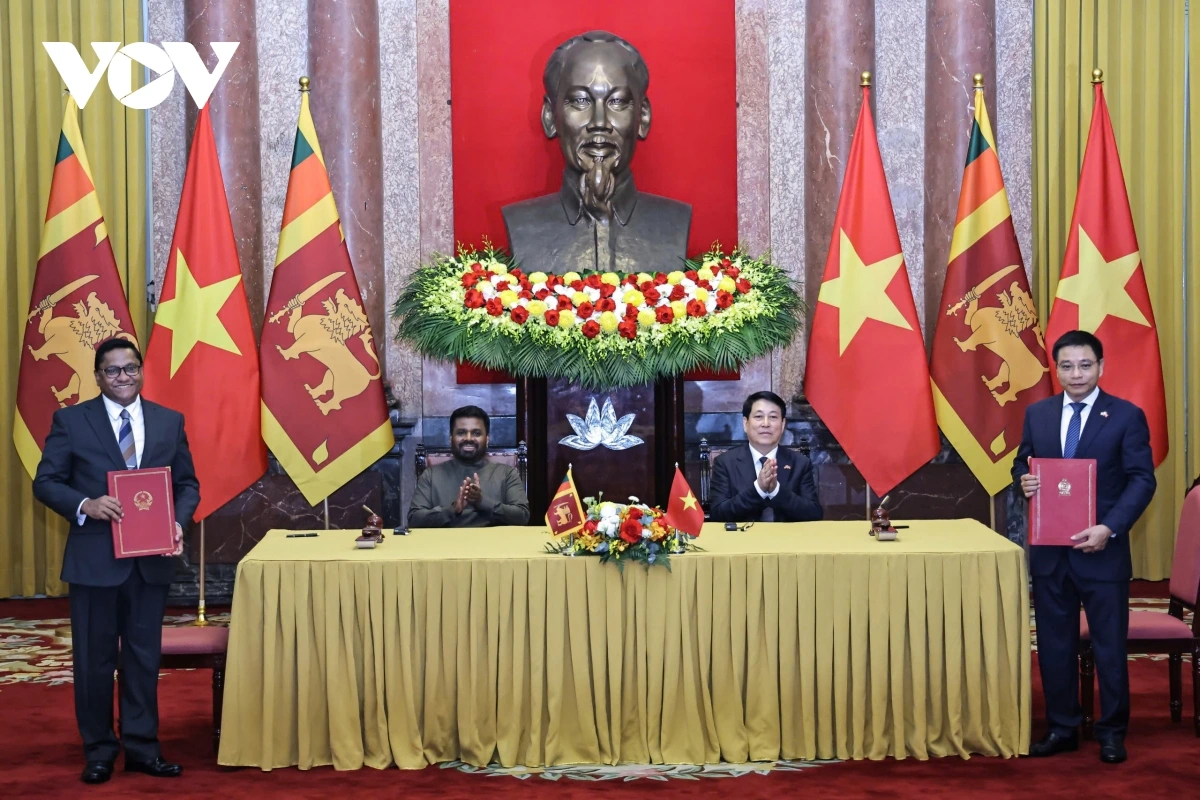 | Sau hội đàm, Chủ tịch nước Lương Cường và Tổng thống Sri Lanka Anura Kumara Dissanayaka đã chứng kiến lễ ký kết các văn kiện hợp tác trong các lĩnh vực ngoại giao, thương mại, hải quan, nông nghiệp, chế tạo máy. Hai nhà lãnh đạo cũng có cuộc gặp gỡ báo chí để thông báo kết quả hội đàm. |