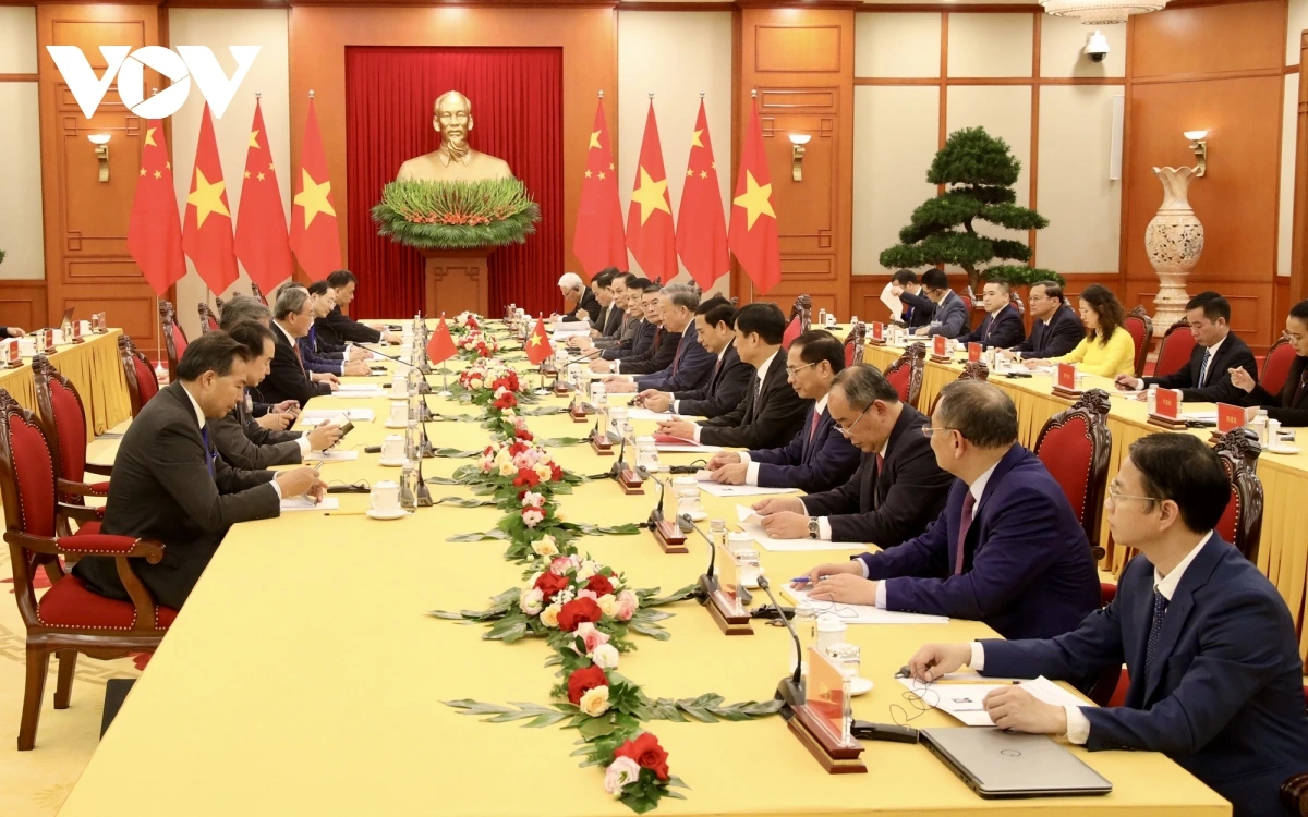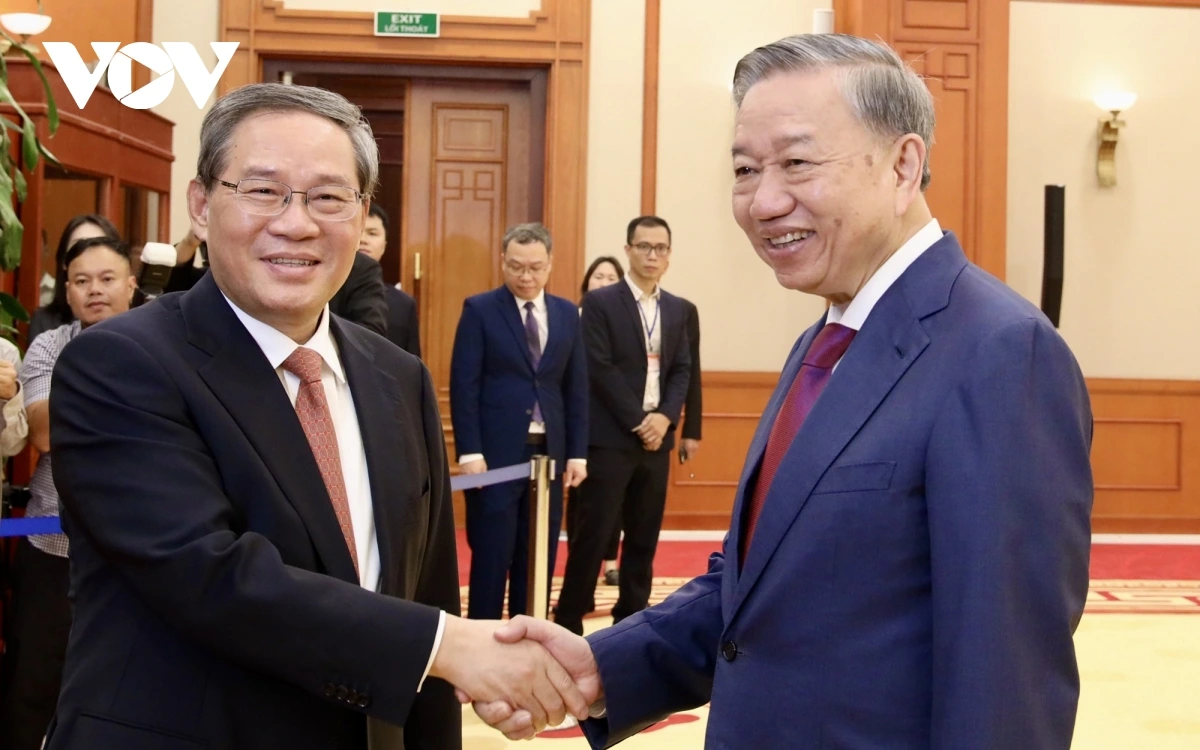 | Sau khi đến Hà Nội, tối 12/10, Thủ tướng Lý Cường đến chào và hội kiến Tổng Bí thư, Chủ tịch nước Tô Lâm tại Trụ sở Trung ương Đảng. Hai bên nhất trí duy trì trao đổi cấp cao và các cấp thường xuyên; thúc đẩy đồng bộ, hiệu quả trên các kênh đối ngoại đảng, ngoại giao nhà nước, đối ngoại nhân dân; thúc đẩy hợp tác trên lĩnh vực quốc phòng, an ninh, đối ngoại cùng nhau ứng phó có hiệu quả với những thách thức an ninh phi truyền thống; nâng cao hiệu quả các cơ chế hiện có giữa hai nước và mở rộng triển khai tốt các cơ chế mới. Về vấn đề trên biển, hai bên nhất trí về tầm quan trọng của việc duy trì hòa bình, ổn định ở Biển Đông. |