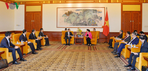 Chủ tịch Trung Quốc Tập Cận Bình cũng nhất trí với Chủ tịch Quốc hội về việc hai bên sẽ tích cực hỗ trợ, khuyến khích các địa phương, nhất là các địa phương biên giới phát huy vai trò của các cơ chế hợp tác hiện có, tăng cường giao lưu, hợp tác kinh tế, thương mại, đầu tư, du lịch... phục vụ phát triển kinh tế, xã hội. Tại cuộc gặp này, Chủ tịch Quốc hội Việt Nam nhấn mạnh, Việt Nam mong muốn cùng Trung Quốc kiểm soát tốt bất đồng, xử lý thỏa đáng vấn đề Biển Đông để tạo cơ sở cho sự phát triển ổn định, bền vững của quan hệ hai nước.