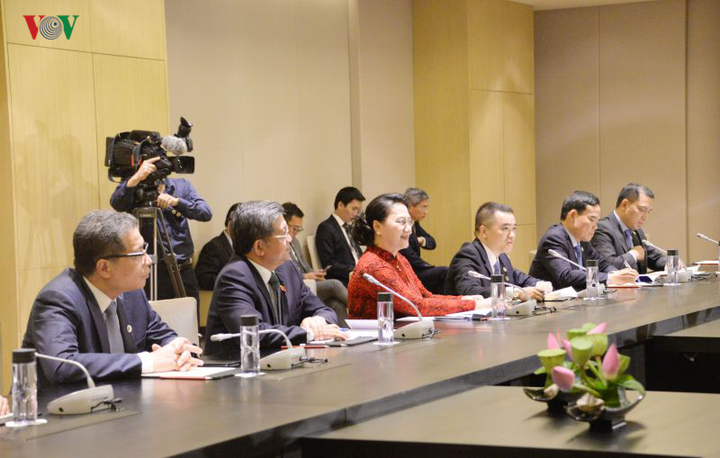 Tại cuộc hội đàm, hai Chủ tịch Quốc hội cùng bàn về việc đẩy mạnh hơn nữa hiệu quả hợp tác giữa hai nước trong thời gian tới; Quốc hội hai nước sẽ cùng quan tâm, thúc đẩy Chính phủ hai nước tăng cường hợp tác trao đổi về Kế hoạch thực hiện các thỏa thuận đã kí. Hai Chủ tịch Quốc hội bàn về hợp tác kinh tế thương mại; mở rộng, nâng cao hiệu quả hợp tác trên các lĩnh vực kết nối giao thông, hàng không, tài chính, nông nghiệp, văn hóa, giáo dục, du lịch, môi trường, ứng phó biến đổi khí hậu và hợp tác giữa các địa phương, giao lưu nhân dân... (ảnh: TTXVN)