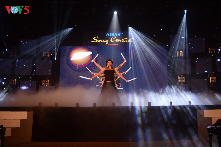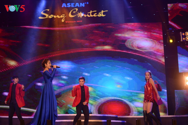 | Trước khi bắt đầu chính thức các phần thi, các ca sĩ đã cùng hòa giọng trong ca khúc chính thức của cuộc thi “Tiếng hát ASEAN+3” (ASEAN Song Contest 2017) mang tên “Bài ca ASEAN”. Ca khúc do Tổng Giám đốc Đài TNVN, trưởng Ban chỉ đạo cuộc thi Nguyễn Thế Kỷ sáng tác với phần nhạc của nhạc sĩ Doãn Nguyên với nội dung về tình đoàn kết, hòa hợp và giao lưu văn hóa giữa các quốc gia. |