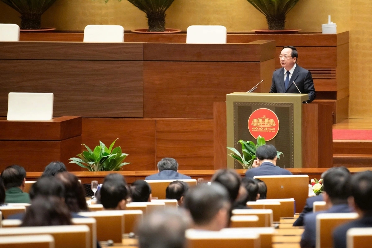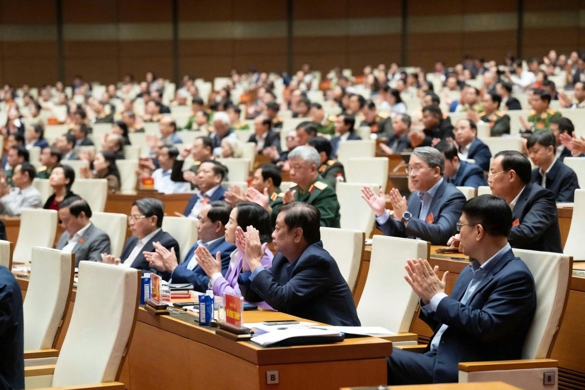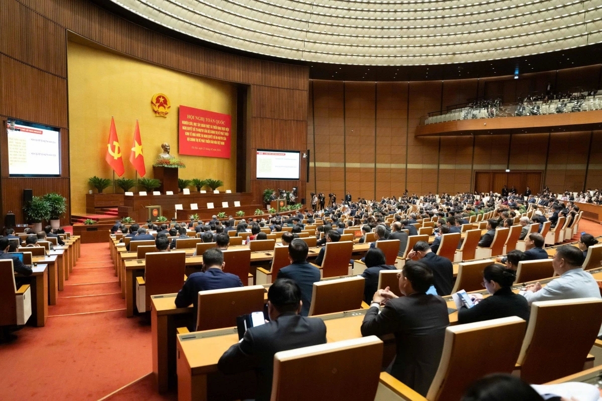 | Các đại biểu dự hội nghị tại điểm cầu chính - Hội trường Diên Hồng, Nhà Quốc hội. |