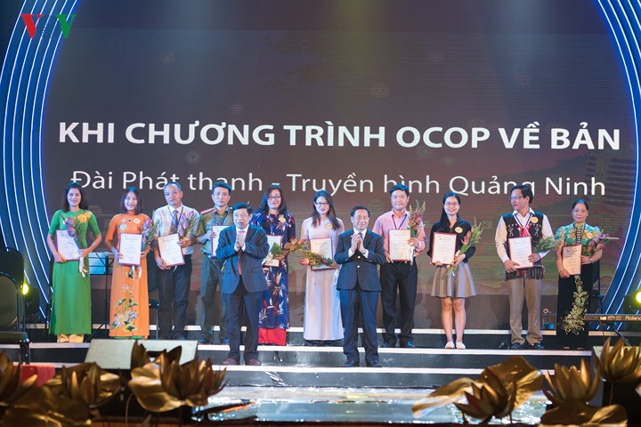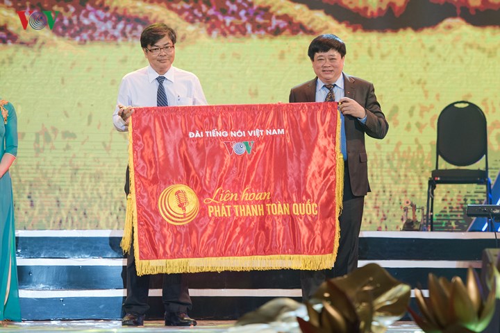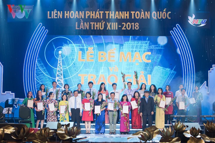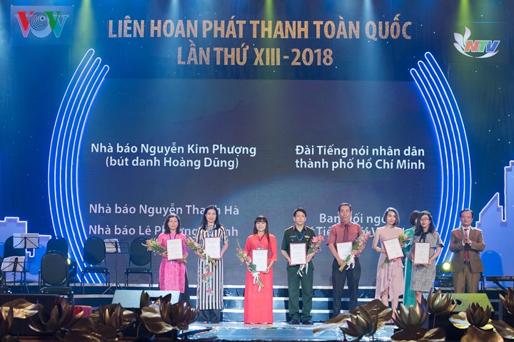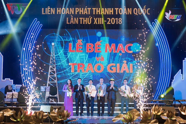 Ông Vũ Hải - Phó Tổng Giám đốc VOV, Trưởng Ban Tổ chức LHPT lần thứ XIII và ông Mai Đức Lộc - Phó Chủ tịch Hội Nhà báo Việt Nam tặng hoa và giấy chứng nhận cho các tác giả đoạt giải Bạc của các thể loại Câu chuyện truyền thanh; Chương trình tổng hợp và Chương trình tiếng dân tộc.