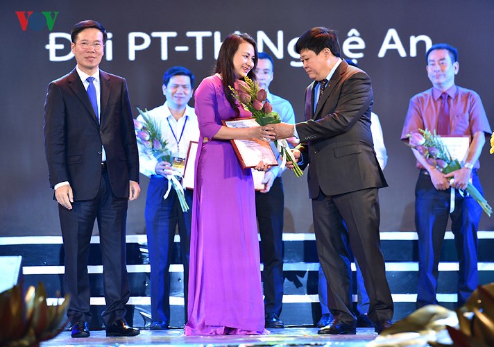 ![]() Ông Hồ Phúc Hợp - Ủy viên Ban thường vụ Tỉnh ủy, Trưởng Ban Tuyên giáo Tỉnh ủy Nghệ An trao giải thưởng Người dẫn chương trình phát thanh trực tiếp xuất sắc nhất và Dàn dựng chương trình hay. |