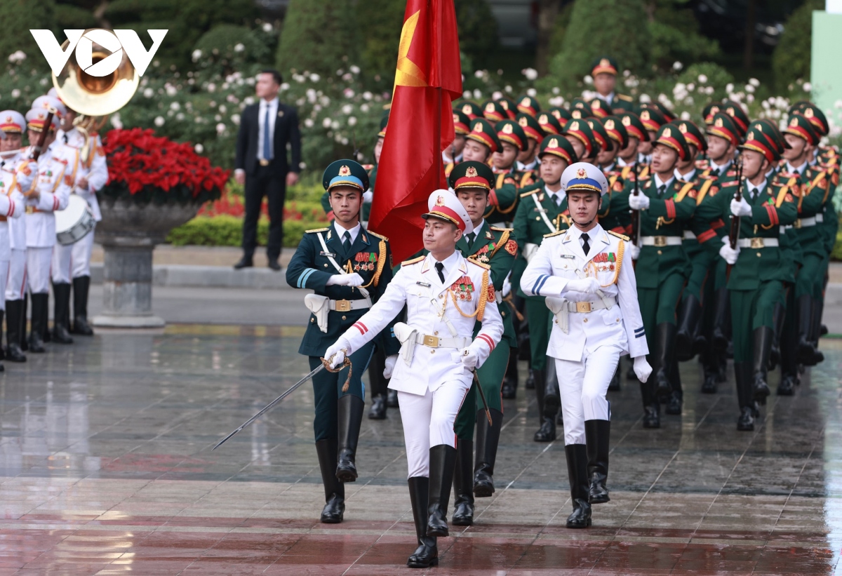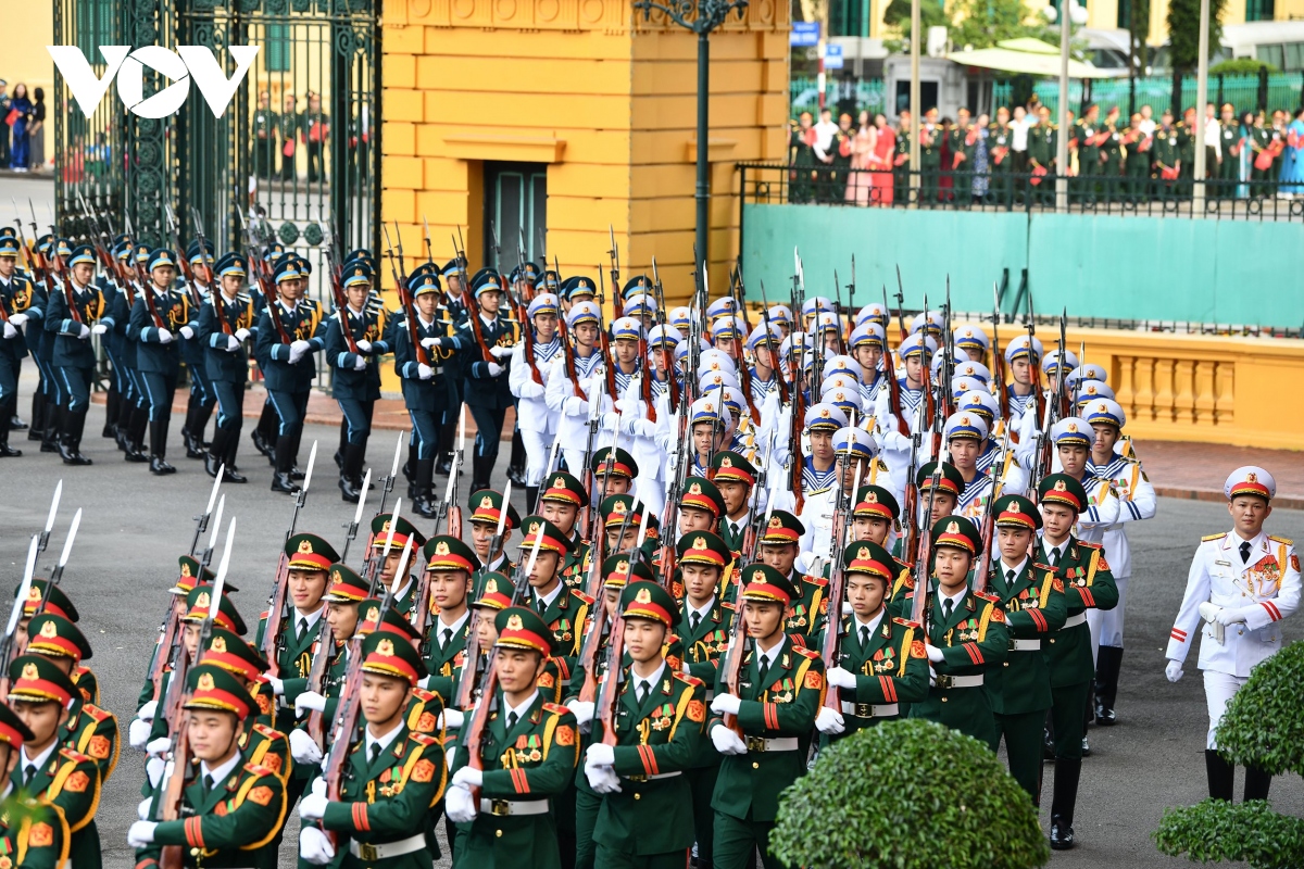 Đội danh dự Quân đội Nhân dân Việt Nam tiến vào Phủ Chủ tịch. |