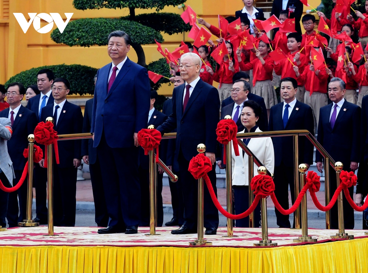 Tổng Bí thư Nguyễn Phú Trọng chủ trì lễ đón cấp nhà nước với Tổng Bí thư, Chủ tịch Trung Quốc Tập Cận Bình và Phu nhân. |