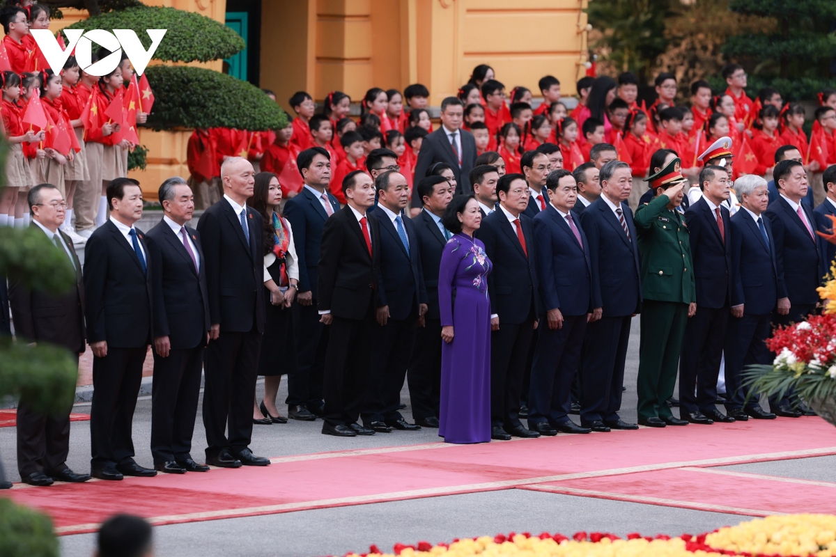 Tham dự lễ đón còn có các quan chức cấp cao hai nước. |