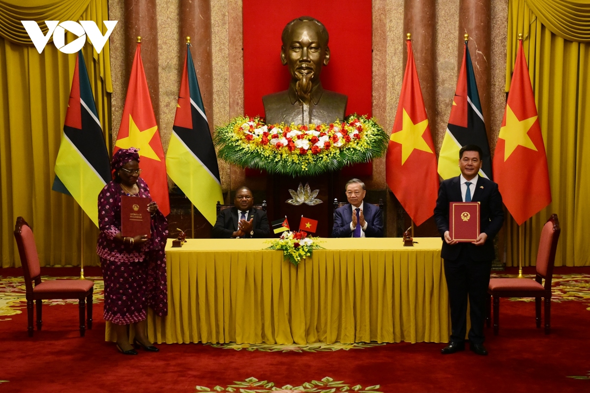 Sau hội đàm, Tổng Bí thư, Chủ tịch nước Tô Lâm và Tổng thống Filipe Jacinto Nyusi đã chứng kiến lễ ký kết, trao văn kiện hợp tác song phương giữa hai nước trong lĩnh vực nông nghiệp, năng lượng và khoáng sản. |