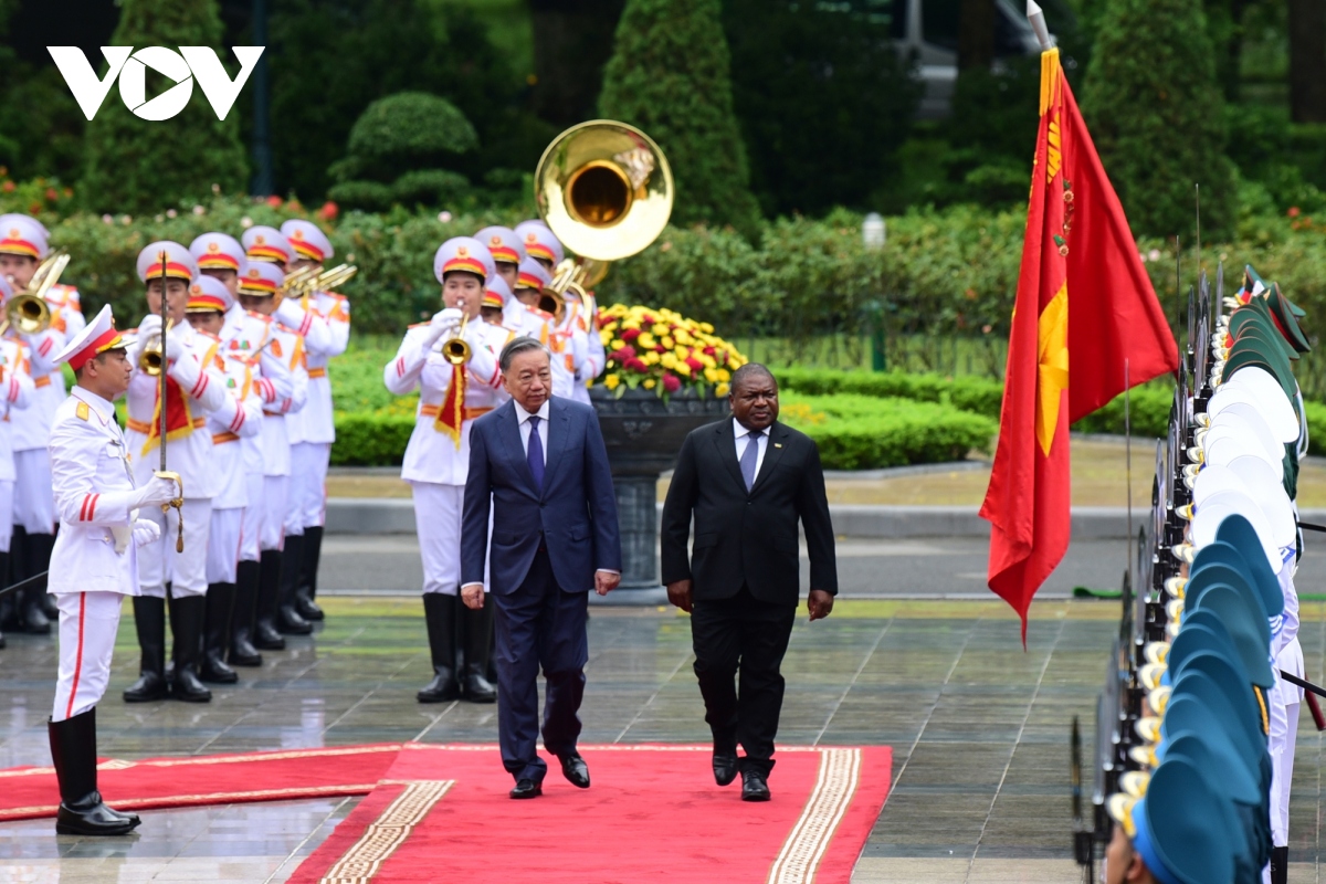 Tổng Bí thư, Chủ tịch nước Tô Lâm chào mừng Tổng thống Mozambique thăm chính thức Việt Nam, bày tỏ ấn tượng với đất nước Mozambique và khẳng định mối quan hệ truyền thống giữa hai nước. |