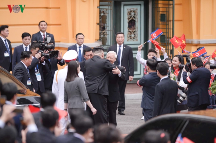 | Chiều nay (1/3), tại Phủ Chủ tịch ở thủ đô Hà Nội, Tổng Bí thư, Chủ tịch nước Nguyễn Phú Trọng đã chủ trì lễ đón chính thức Chủ tịch Đảng lao động Triều Tiên Kim Jong Un. |