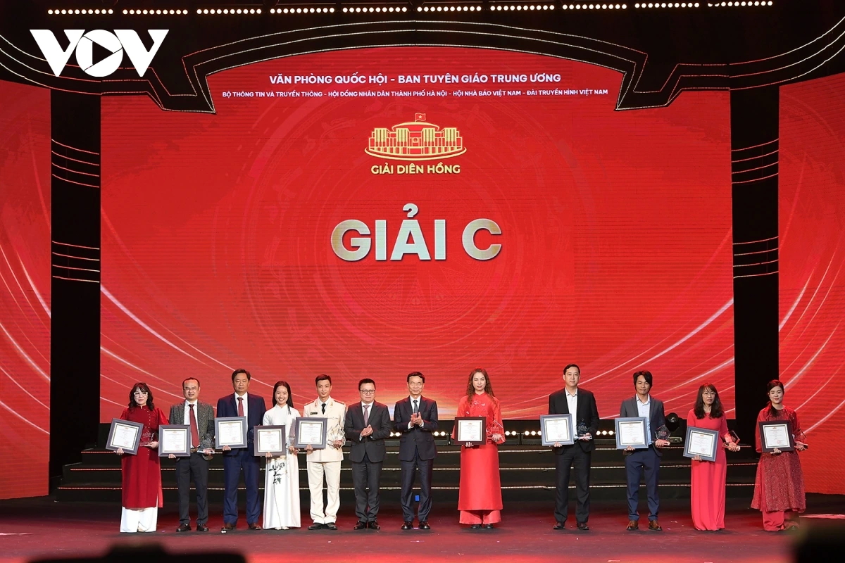 | Nhóm tác giả đoạt giải C, trong đó, tác phẩm: Loạt 4 bài: “Điểm sáng” Việt Nam và dấu ấn kiến tạo thể chế của nhóm tác giả Phạm Công Hân, Uông Ngọc Thành, Nguyễn Hà Phương - Báo Điện tử VOV, Đài Tiếng nói Việt Nam giành giải ở thể loại Báo điện tử. |