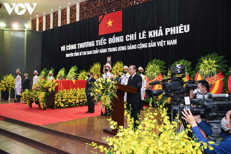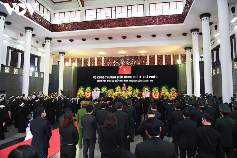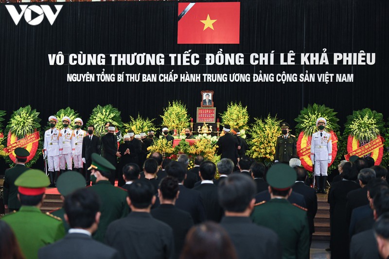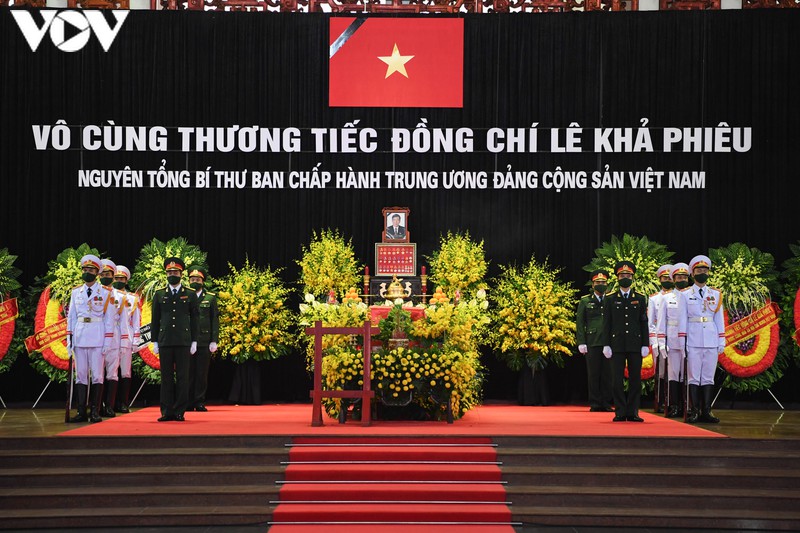 Vào lúc 12h30 trưa 15/8, lễ truy điệu nguyên Tổng Bí thư Lê Khả Phiêu được tổ chức tại Nhà tang lễ Quốc gia, số 5 Trần Thánh Tông, Hà Nội.