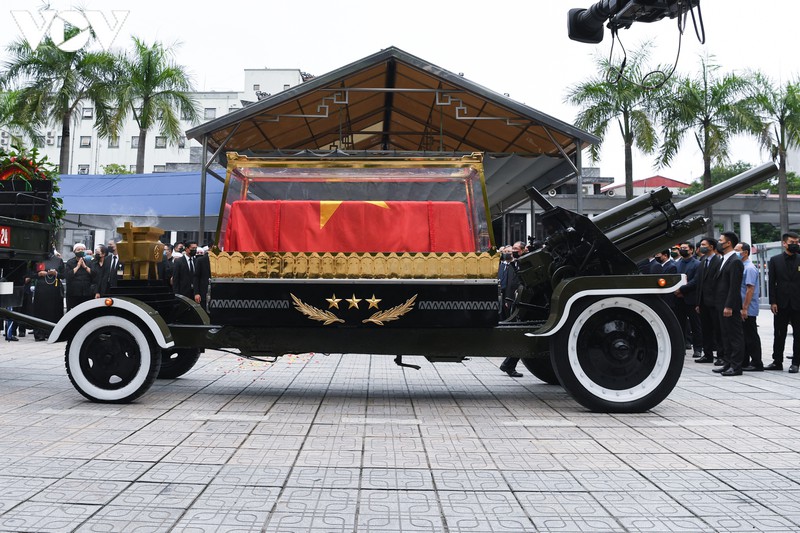 Linh cữu của nguyên Tổng Bí thư Lê Khả Phiêu được đưa lên cỗ linh xa.