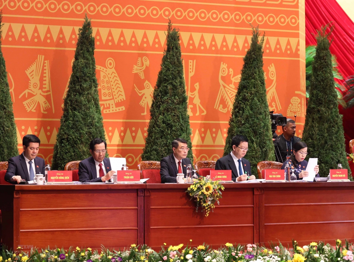 Đoàn Chủ tịch điều hành Đại hội gồm 17 thành viên. Trong đó có 16 Ủy viên Bộ Chính trị và Chủ tịch Mặt trận Tổ quốc Việt Nam Trần Thanh Mẫn. |